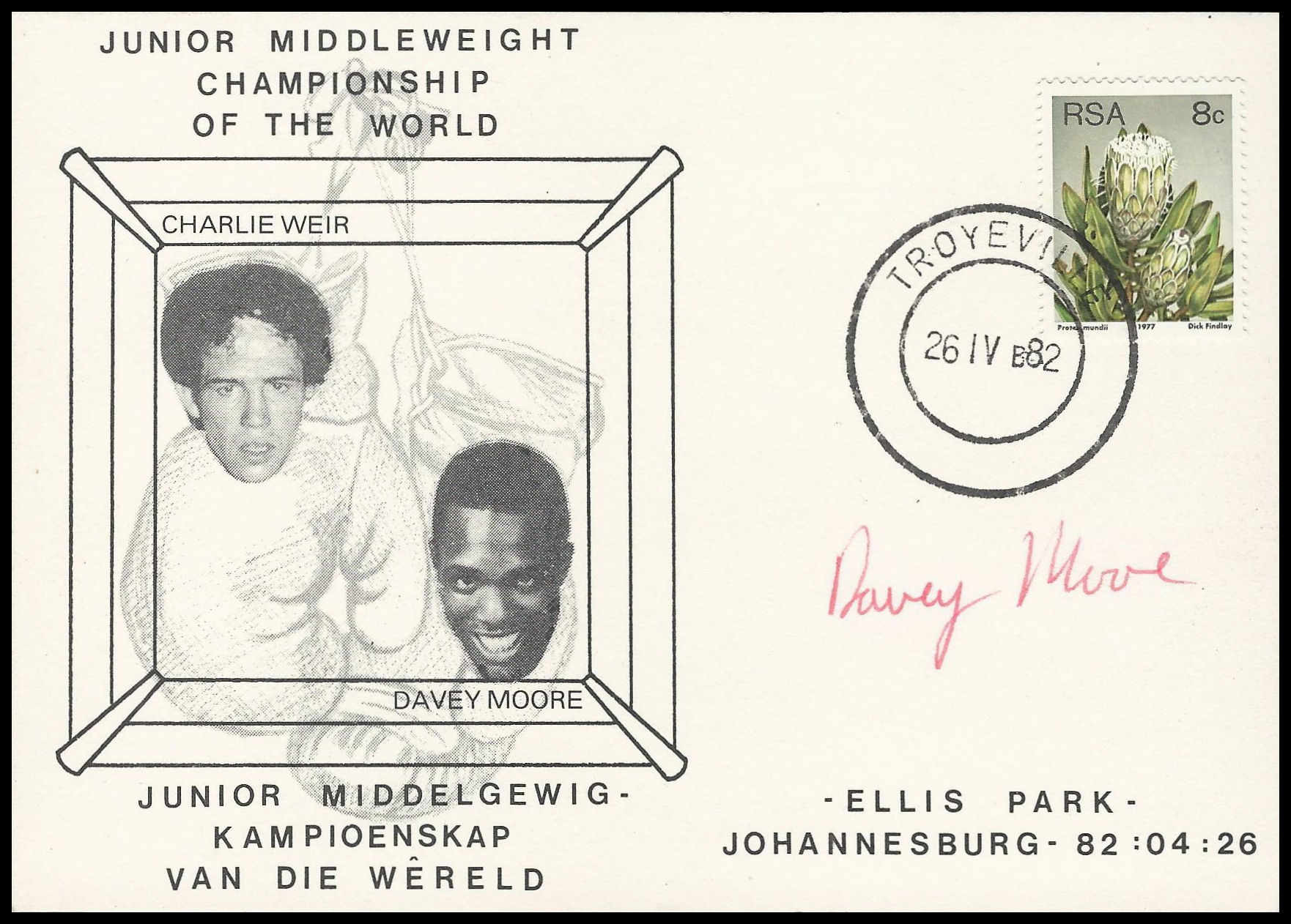 Boxing. Card signed by American World Champion Boxer Davey Moore.