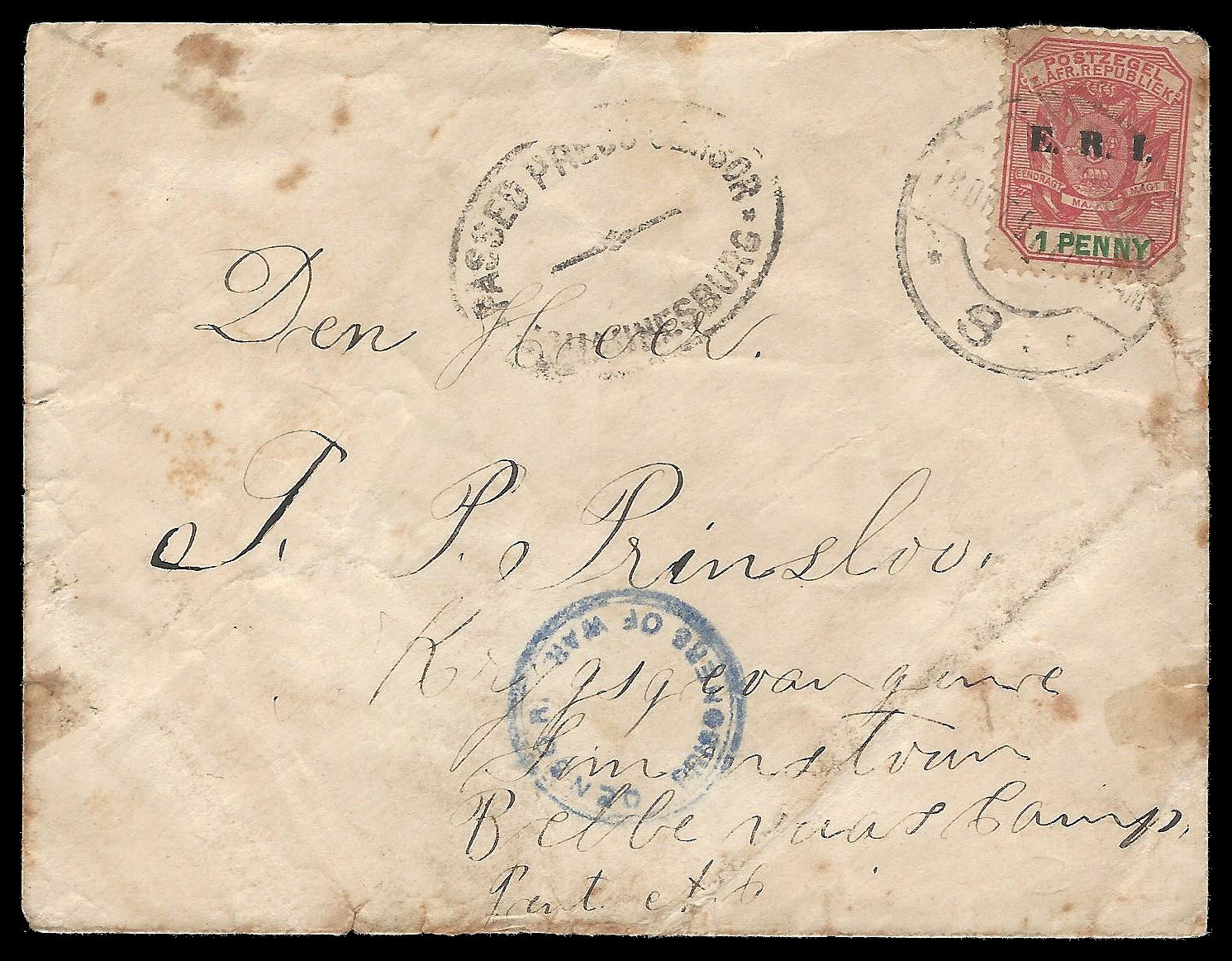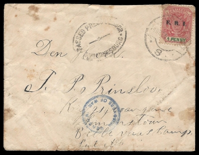 Anglo Boer War. Censored Prisoner of War Cover. Transvaal to Bellevue Camp, Simon’s Town.