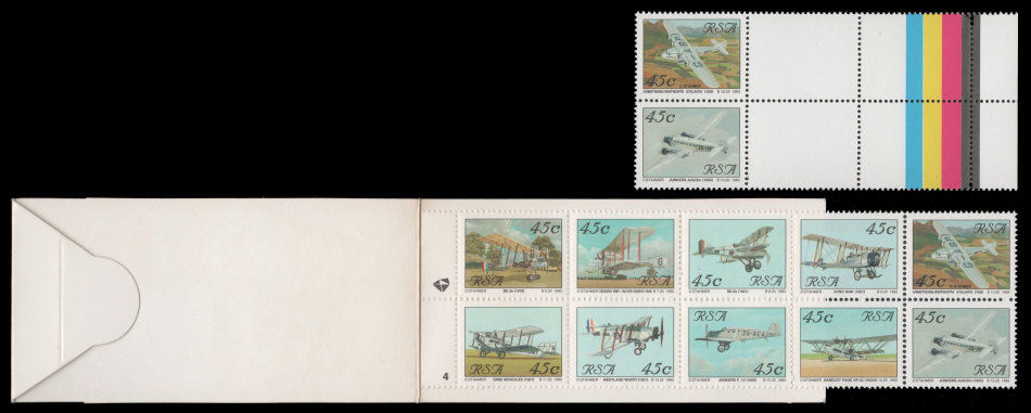 Republic of South Africa. Aviation Booklet PROOF strip with colour bars. Booklet included.