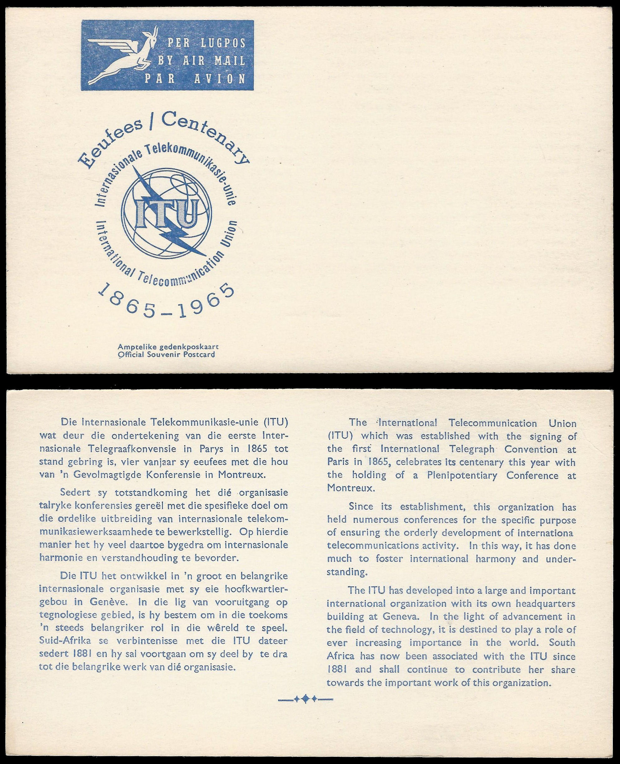 Republic of South Africa. 1965 I.T.U. FDC No.1 – 3 Diamonds - Unserviced as per scan.