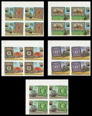 Ivory Coast. SG 784/8. 1979 Rowland Hill complete set in IMPERFORATED superb unmounted mint blocks of 4.