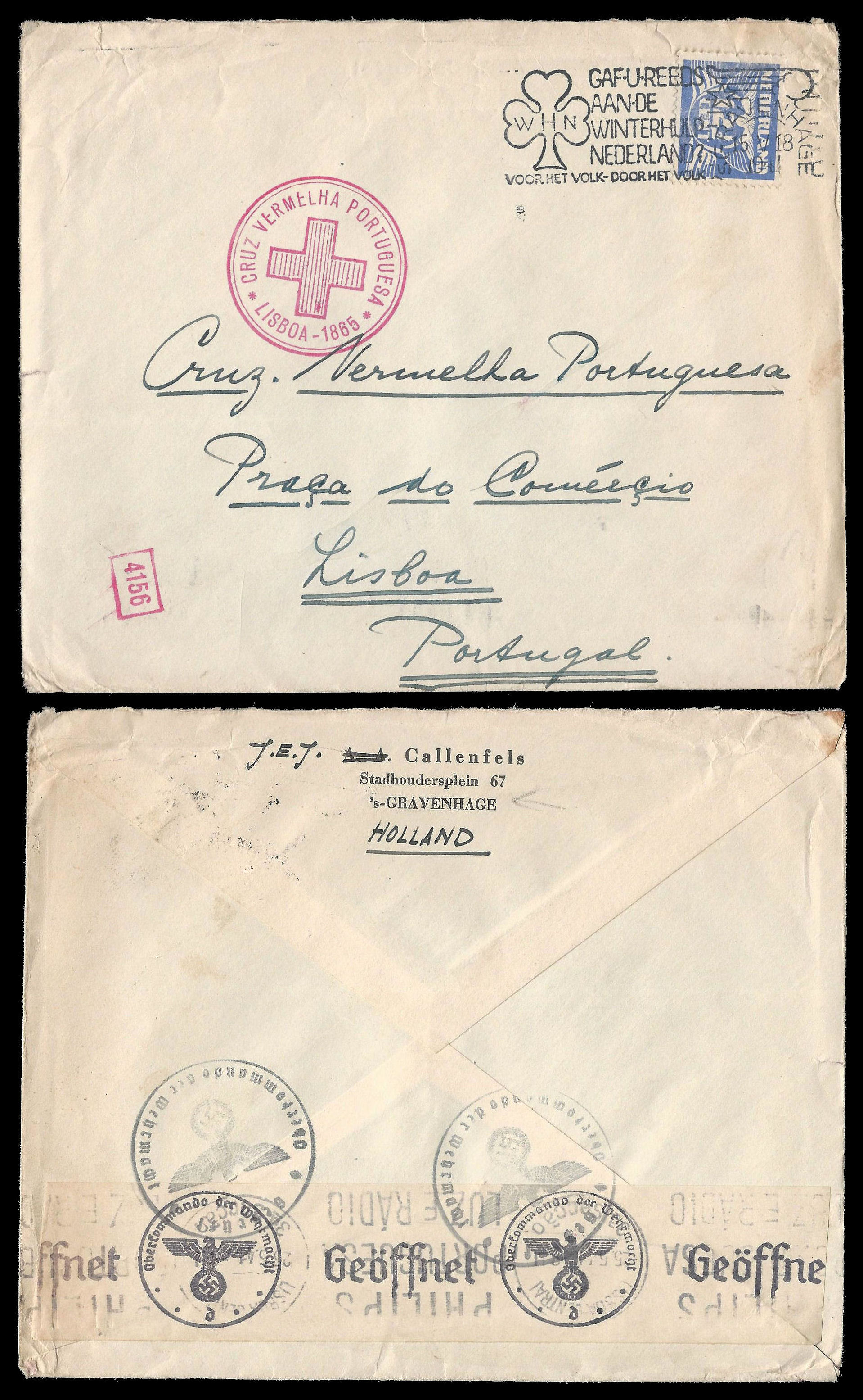 Second World War Censored cover from The Netherlands to Red Cross Society, Lisbon.