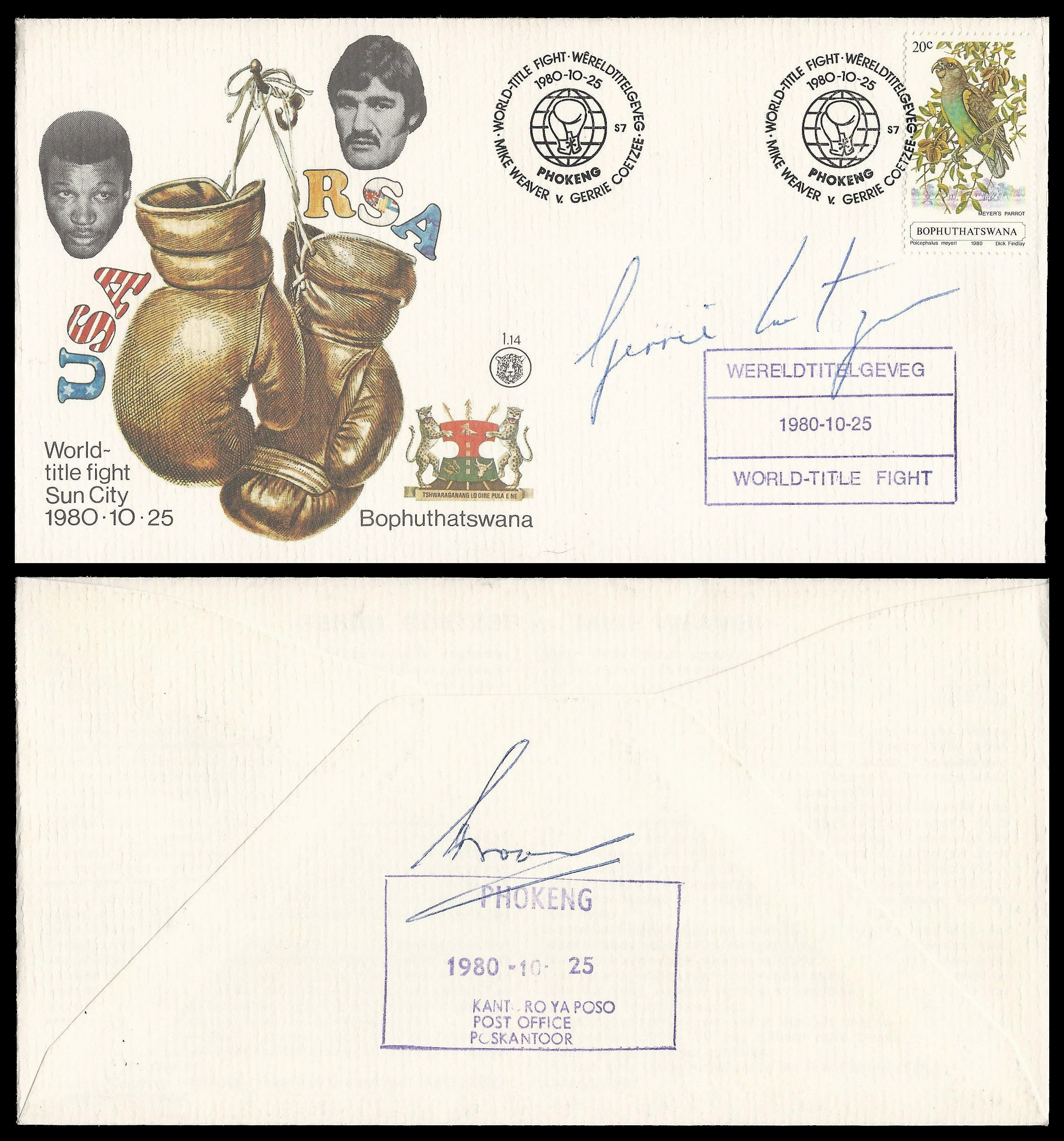 Bophuthatswana. 1980 Cover signed by World Boxing Champion Gerrie Coetzee. Very fine condition.