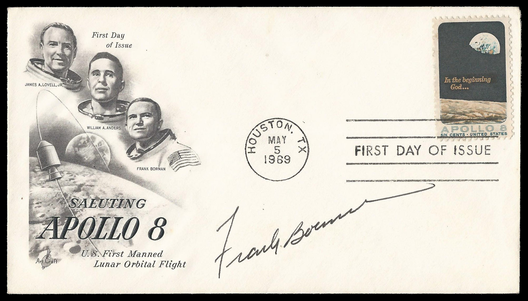 1969 USA FDC Signed by Frank Borman, commander of the Apollo 8 lunar mission. Very fine condition.