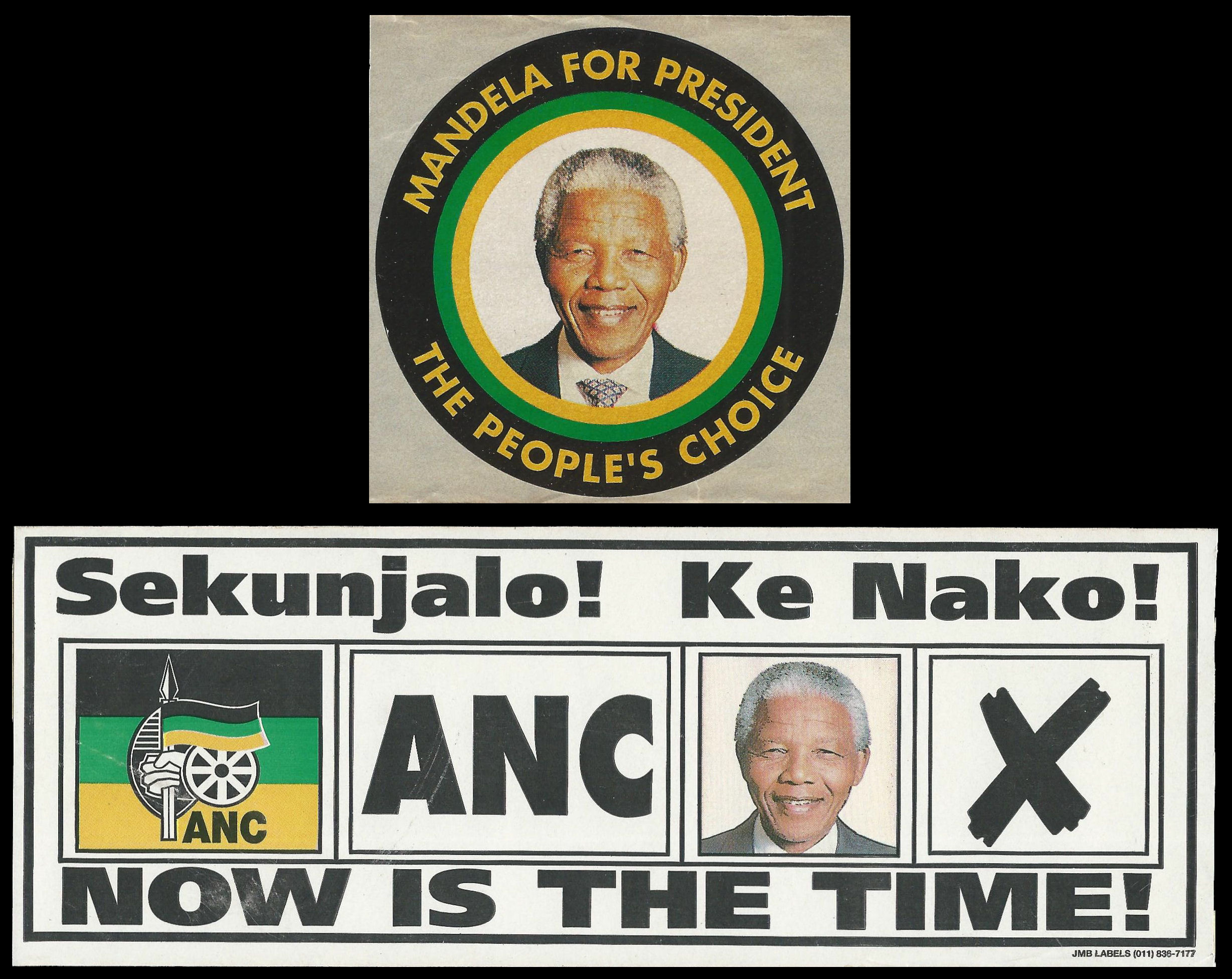 Nelson Mandela. 1994 Election stickers. Very fine condition.
