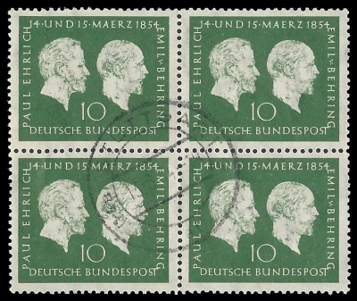 Germany. 1954 Paul Ehrlich (Mi 197) in a fine used block of 4. Catalogue value R360-00 (€18-00).