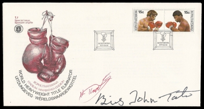 Bophuthatswana. 1979 Cover signed by (later to become) World Boxing Champion (Big) John Tate and Kallie Knoetze.