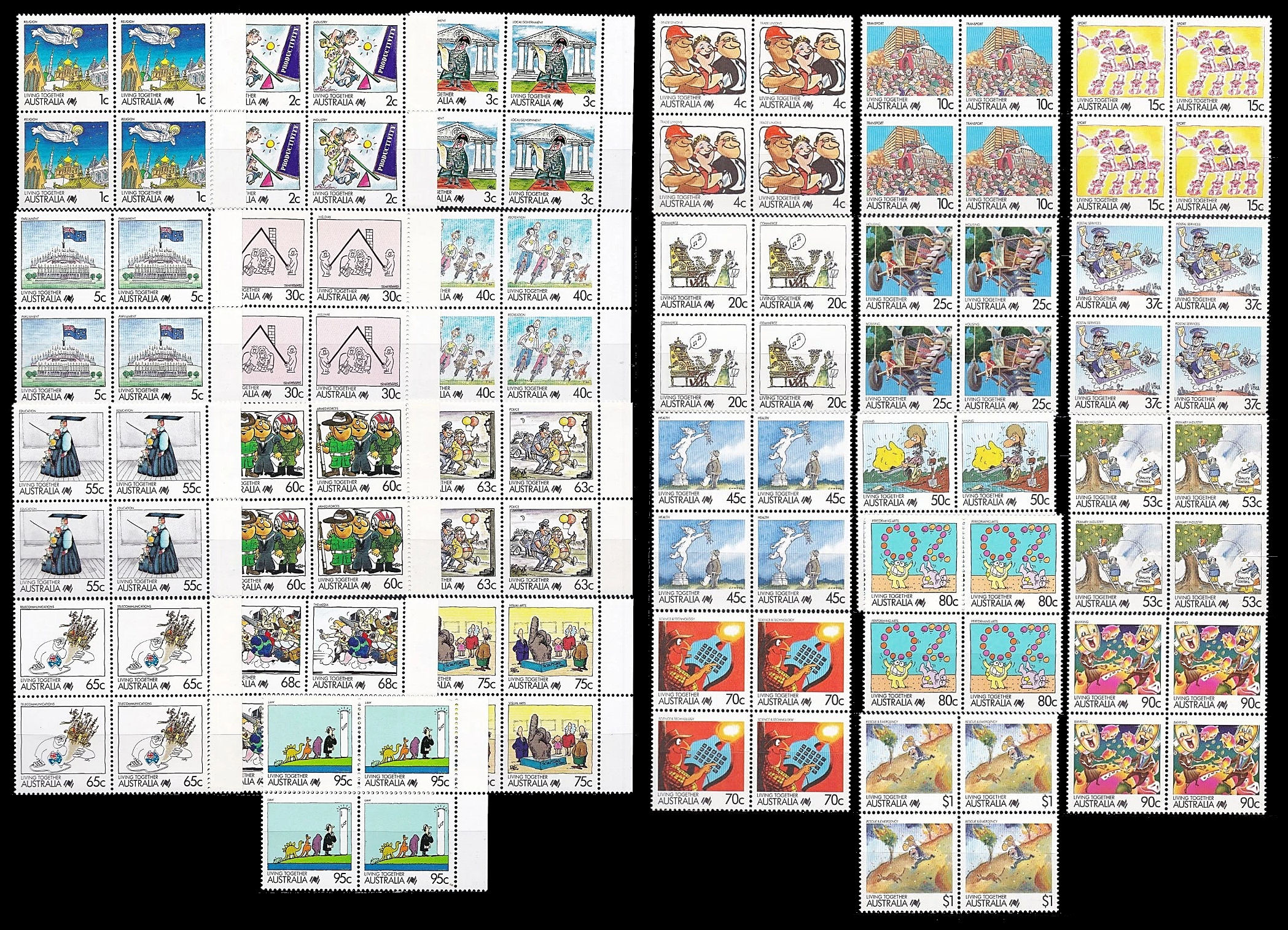 Australia. 1988 Friendship issue in blocks of 4. All superb unmounted mint. FACE value R550-00 ($46-64).