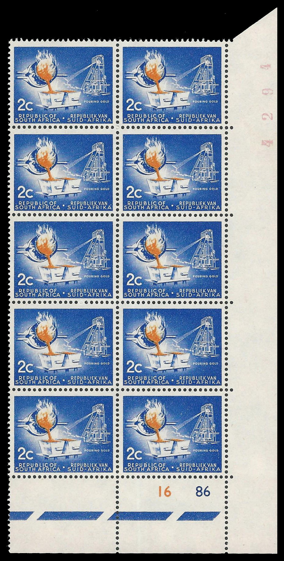 Republic of South Africa. 1961 2c No Watermark (SACC 211) extended control block with sheet number. Very fine unmounted mint. Catalogue value R2 150-00.