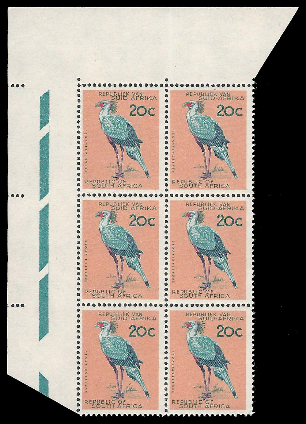 Republic of South Africa. 1963 20c No Watermark (SACC 217) with Extra Perfs in Margin. Superb unmounted mint. Catalogue value R1 200-00 as basic.