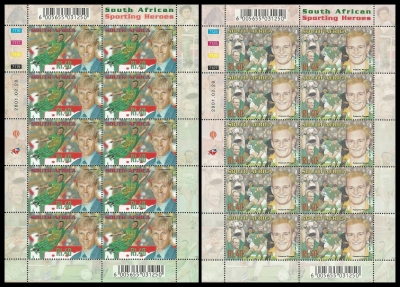 Republic of South Africa. 2001 South African Sporting Heroes (SACC 1348/57) in a complete set of 10 sheetlets (only two sheets shown). Very fine unmounted mint. Catalogue value R1600-00.