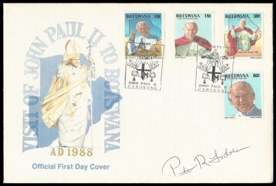 Botswana. 1988 Visit of Pope John Paul II FDC signed by designer Peter R Loden. Very fine condition.