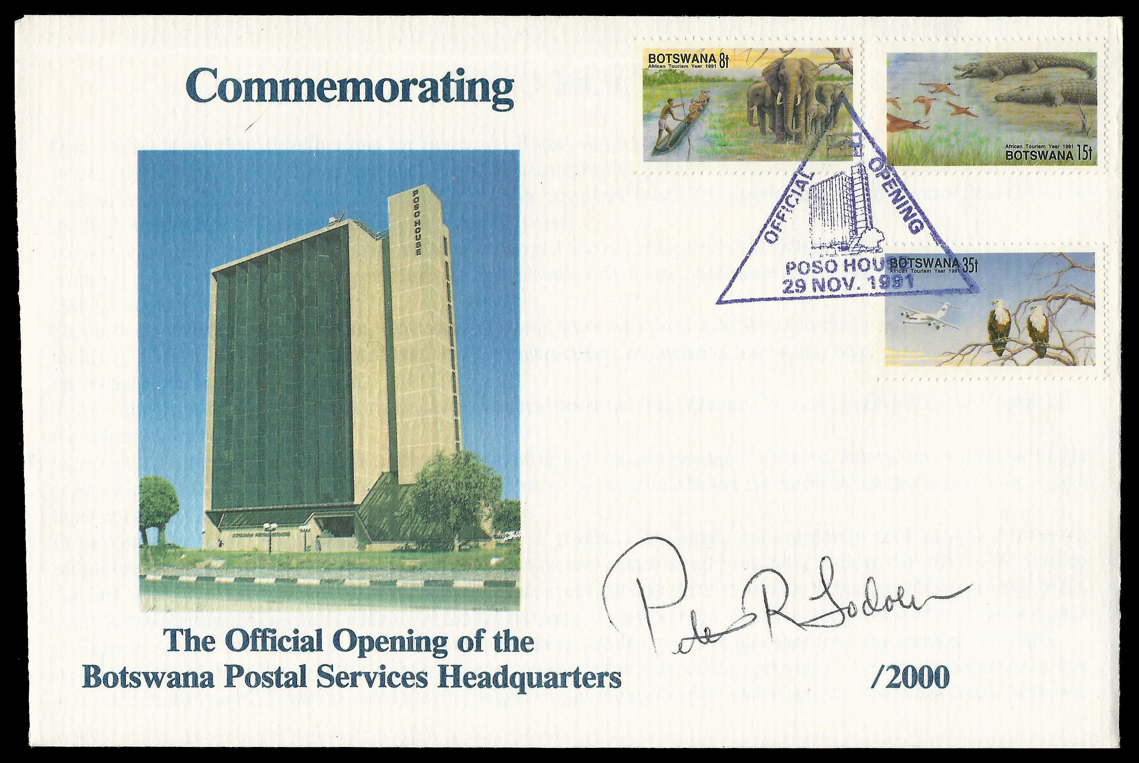Botswana. 1991 Cover signed by designer.