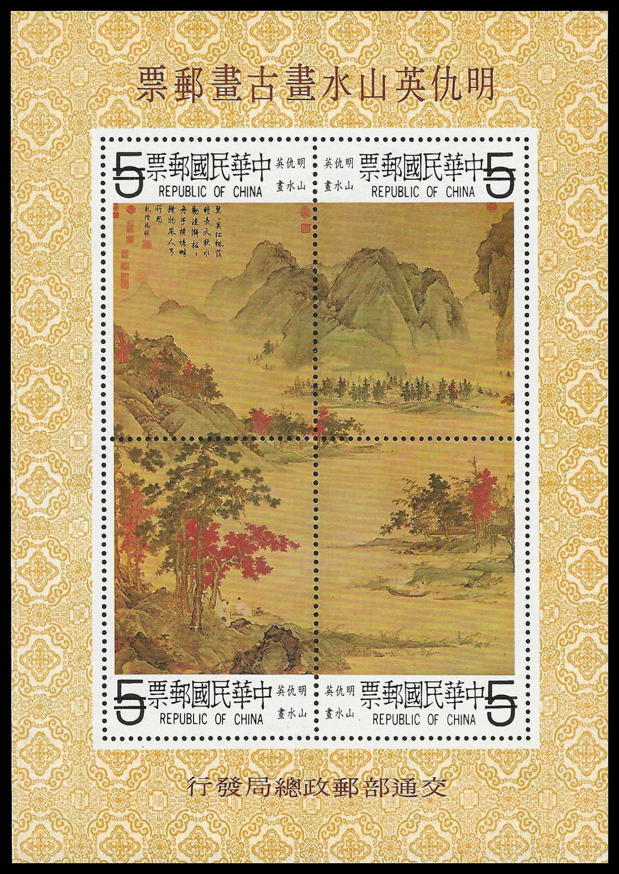 Republic of China. SPECIMEN: 1980 Chiu Ying’s Landscape Paintings souvenir sheet. Superb unmounted mint.