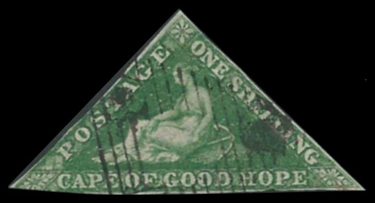 Cape of Good Hope. 1858. 1/- Deep Dark Green (SACC 8b) as per scan. Catalogue value R20 000-00.
