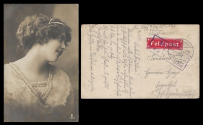 Germany – Reich. World War I Postcard with Feldpost Label.