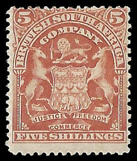 B.S.A.C. 1898 5/- (SACC 81). Mounted mint. Catalogue value R2 000-00.