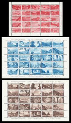 Switzerland. 1958 Alpine Post Trial Printings. Three different Complete Sheets of 25 each. Stamps superb unmounted mint - some very minor marginal creasing as per scan. Suitably folded.