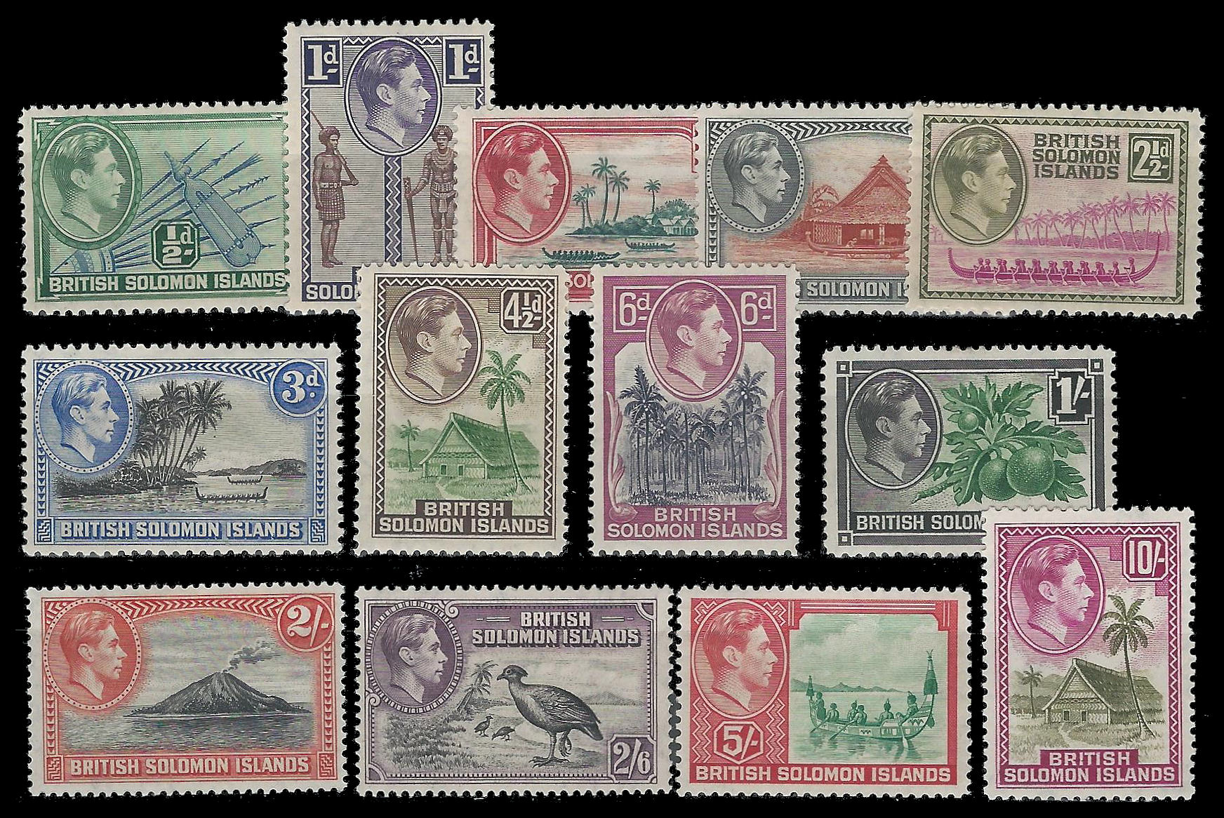 British Solomon Islands. 1939/51 King George VI complete set (SG 60/72). Very fine mounted mint. Catalogue value R2 500-00 (£110-00).