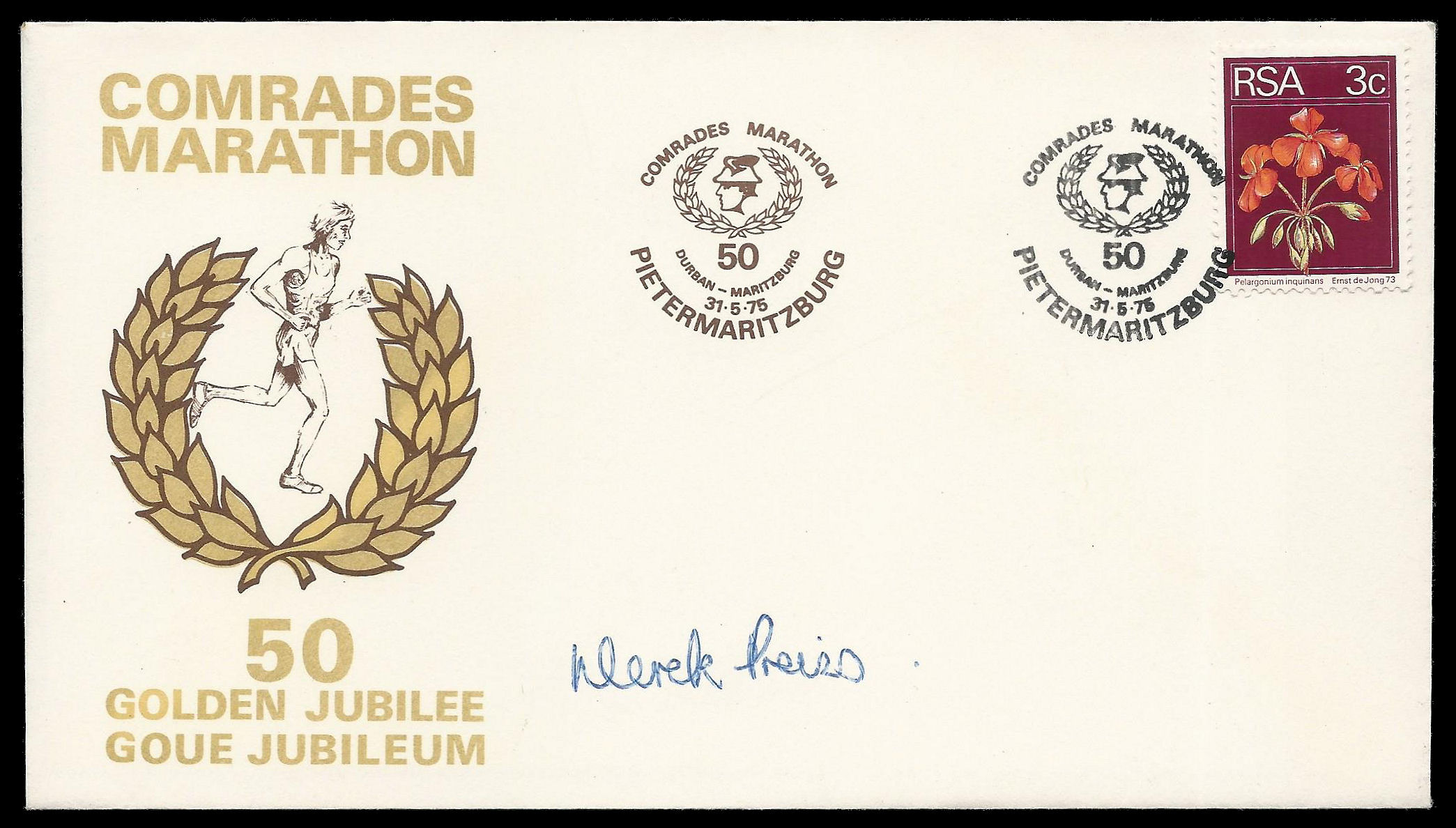 Republic of South Africa. 1975 Comrades cover signed by Derek Preiss