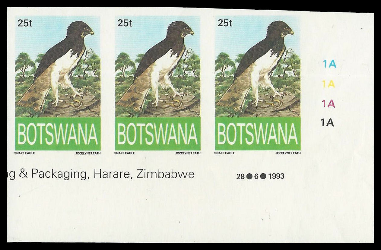 Botswana. 1993 25t Eagles (SG 651) in an Imperforated Control Strip. Very fine unmounted mint.