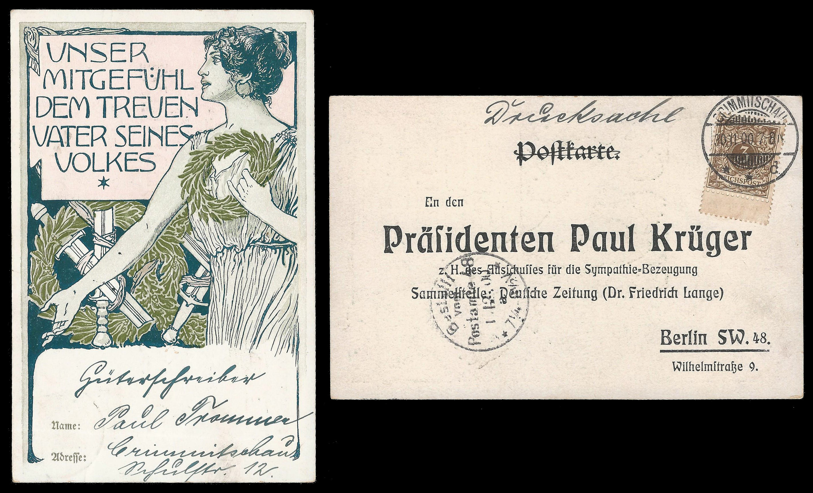 Anglo Boer War. 1900. German Paul Kruger propaganda postcard.