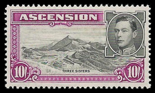 Ascension. 1938 King George VI 10/- Perf 13½ (SG 47). Superb unmounted mint. Catalogue R2 700-00 (£120-00).