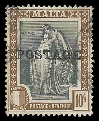 Malta. 1926 10/- (SG 156) used as per scan. Catalogue value R540-00 (£24-00).