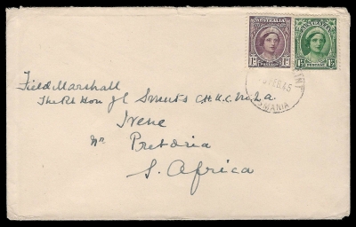 Union of South Africa. 1945 Cover from Australia addressed to (the then Prime Minister of South Africa) Jan Smuts, Pretoria. Fine condition as per scan.