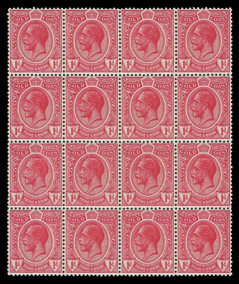 Gold Coast. 1913 King George V 1d (SG 72) in a block of 16. Very fine unmounted mint. Catalogue value R800-00 (£36-00).
