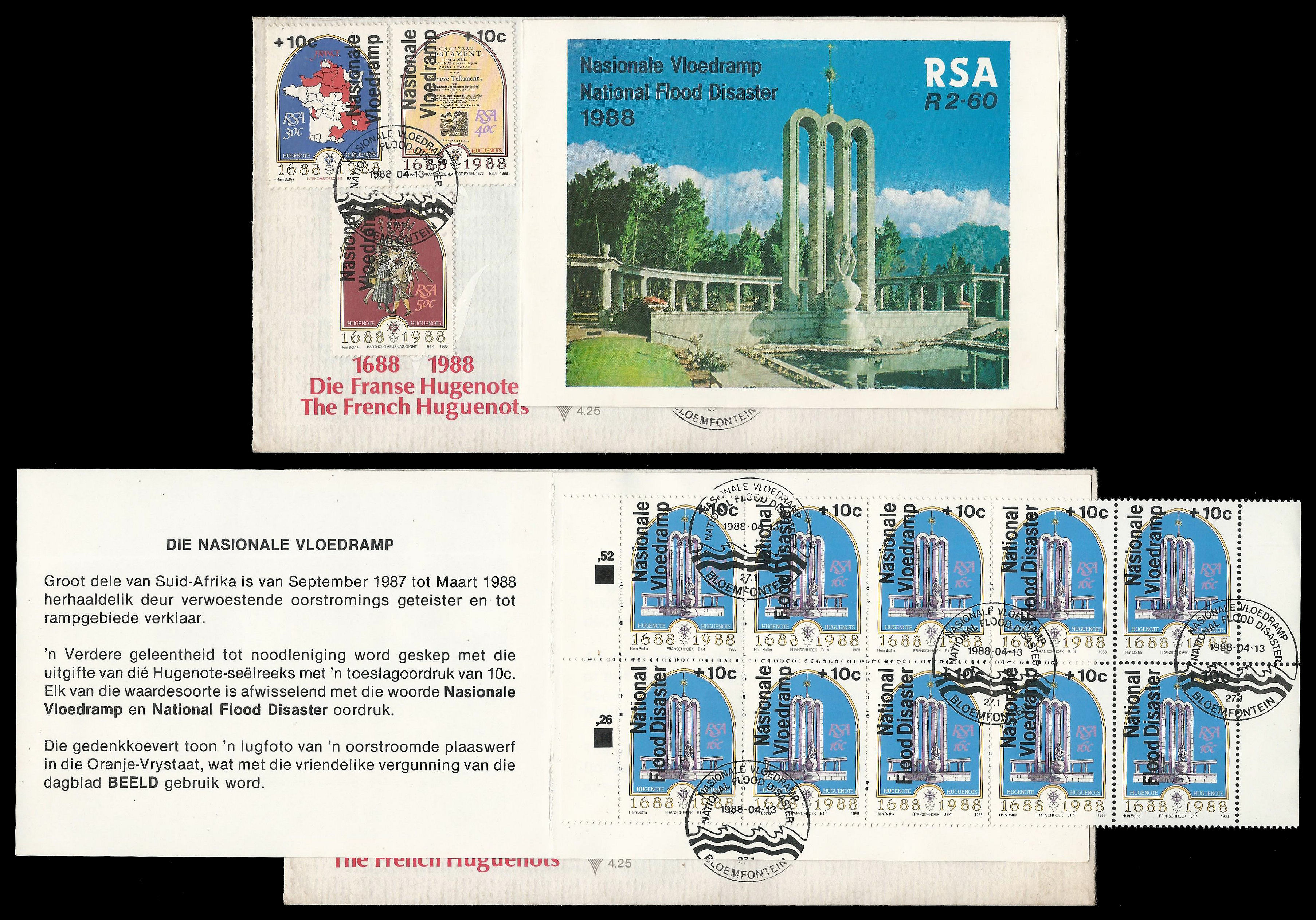Republic of South Africa. 1988 FDC 4.25 with tied Flood Relief Booklet. Very fine condition.