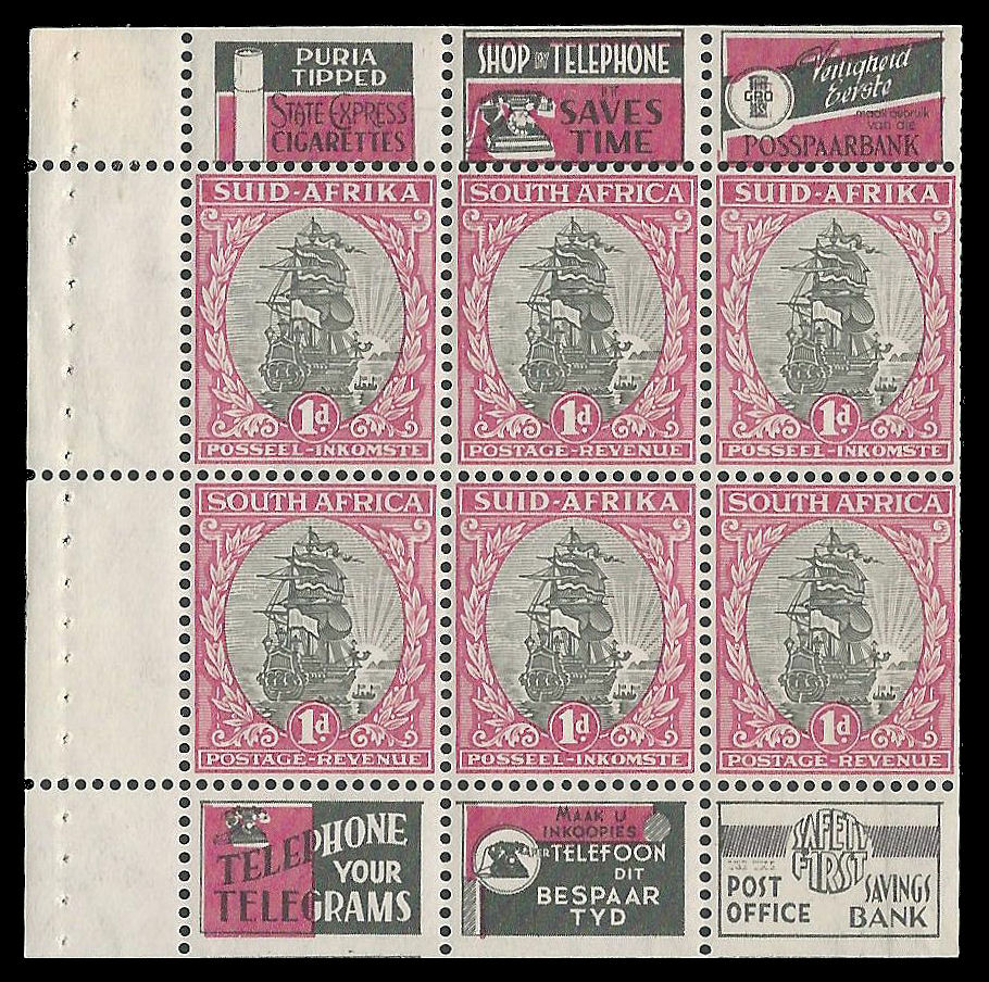 Union of South Africa. 1d Pane ex 1935 Booklet 10. Very fine unmounted mint.