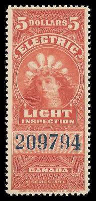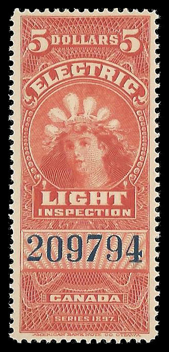 Canada. 1897 Queen Victoria 5 Dollar “Light Inspection” stamp. Superb unmounted mint.