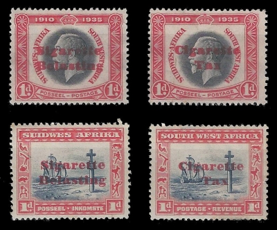 South West Africa. 1931/35. 4 Cigarette Tax stamps.